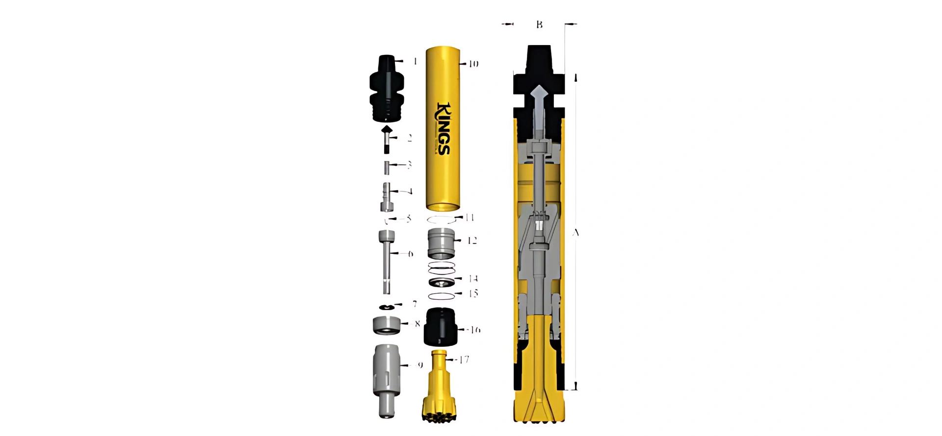 The hammer includes a durable air distributor, effective flushing system, and strong piston design, enabling consistent performance with minimal wear in abrasive formations. Leading DRILLING TOOL manufacturers like Kings Mining Tools focus on these critical features to ensure high reliability.
